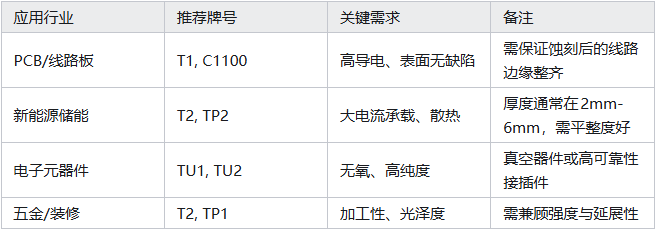 Copper purity ≥99.95%, oxygen content ≤0.003% — No hydrogen embrittlement, extremely high conductivity (IACS ≥101%), excellent weldability. Commonly used in high-precision electronic components (such as semiconductor lead frames), vacuum equipment seals, and aerospace cooling pipes.